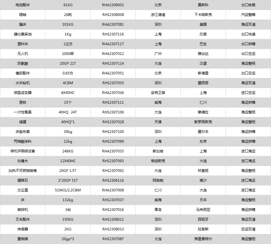 大件货、展品、设备、食品、化妆品、危化品、纺织品、矿产、建材